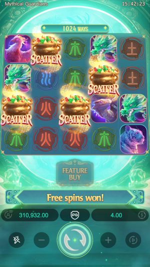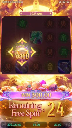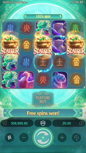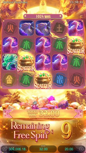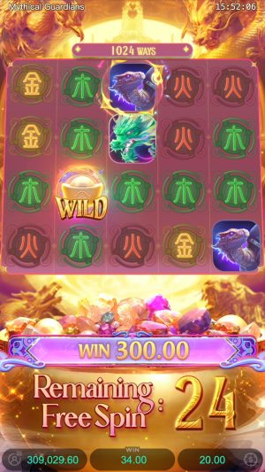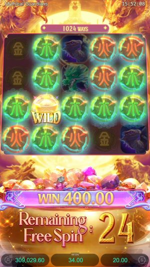 - Mythical Guardians é um caça-níquel da PG Soft, focado na mitologia chinesa e seus guardiões elementais.